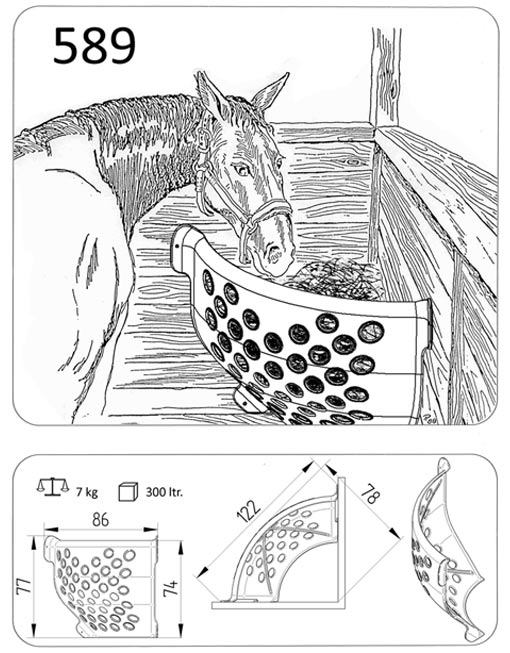 Denna robusta hökrubba är särskilt framtagen för att placeras i hörn och erbjuder en effektiv och hygienisk lösning för utfodring av hö. Med sin genomtänkta design hjälper den till att minimera höspill, vilket både sparar pengar och håller boxen renare då hästen inte trampar ut grovfodret i ströet.