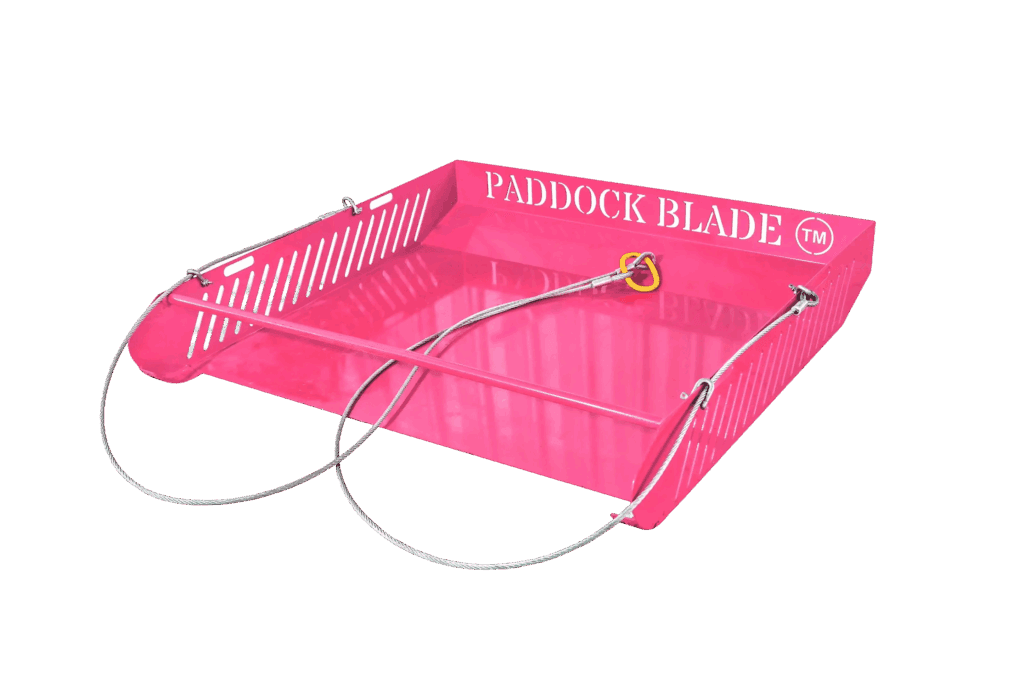 Håll dina hästhagar rena och fräscha med Paddock Blade! Den effektiva gödseluppsamlaren kopplas enkelt till en fyrhjuling, bil eller trädgårdstraktor och tar effektivt bort hästgödsel i hästhagen.